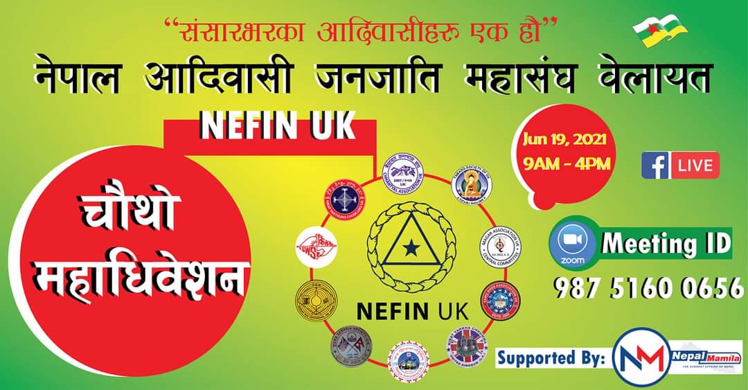 नेपाल आदिवासी जनजाति महासंघ (नेफिन यूके) बेलायतको    चौथो राष्ट्रिय अधिवेशन जुन १९ मा हुने